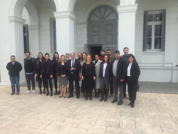 Φωτογραφικό στιγμιότυπο του Περιφερειάρχη Δυτικής Ελλάδας Απόστολου Κατσιφάρα με τις ομάδες των μελετητών.