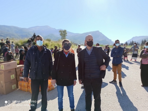 Ο Αντιπεριφερειάρχης Π.Ε. Αχαΐας Χαράλαμπος Μπονάνος μαζί με την Αντιδήμαρχο Υγείας και Πρόνοιας του Δήμου Πατρέων Βίβιαν Σαμούρη, τη Διευθύντρια Δημόσιας Υγείας της Περιφέρειας Γεωργία Πλώτα και άλλα στελέχη, παρέδωσαν τρόφιμα και άλλα είδη πρώτης ανάγκης, ώστε να μην είναι αναγκασμένοι οι άνθρωποι αυτοί να φεύγουν από τον καταυλισμό για την ανεύρεση των απαραίτητων για τη διαβίωσή τους ειδών.