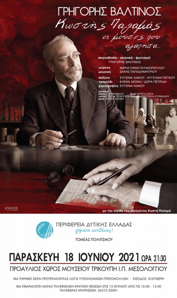 Με την θεατρική παράσταση «Κωστής Παλαμάς – Οι μούσες που αγάπησα» ανοίγει η αυλαία για το Πολιτιστικό Πρόγραμμα της Περιφέρειας