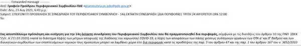 - Πρόσκληση για Έκτακτη Συνεδρίαση Περιφερειακού Συμβουλίου 23/8/2021