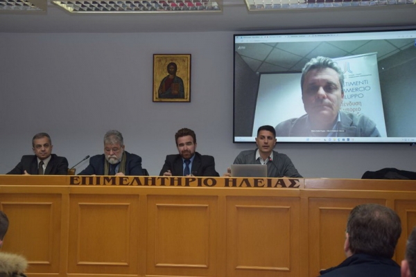 Στην εκδήλωση συμμετείχε, μέσω τηλεδιάσκεψης, ο κύριος Marco Della Puppa, εκπρόσωπος και Γενικός Γραμματέας του Ελληνοϊταλικού Επιμελητηρίου, ο οποίος αναφέρθηκε στις δυνατότητες διμερών συνεργασιών μεταξύ επιχειρήσεων των δύο χωρών καθώς και σε καλές πρακτικές που ακολουθούνται στην γείτονα χώρα, Ιταλία.