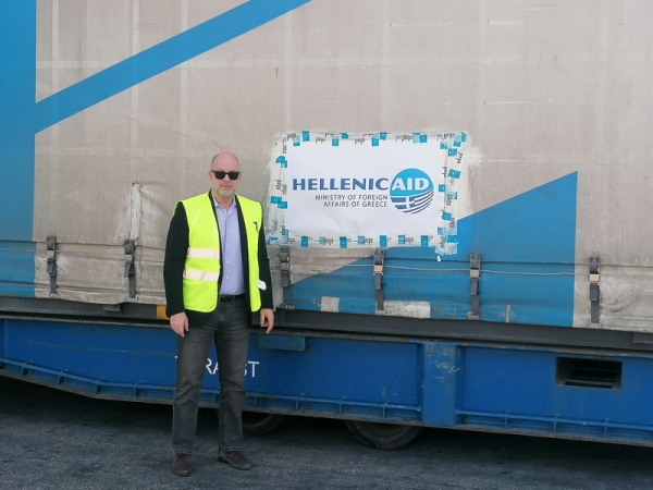 Ο Τάκης Παπαδόπουλος στην αναχώρηση της δεύτερης ανθρωπιστικής αποστολής από το λιμάνι της Πάτρας