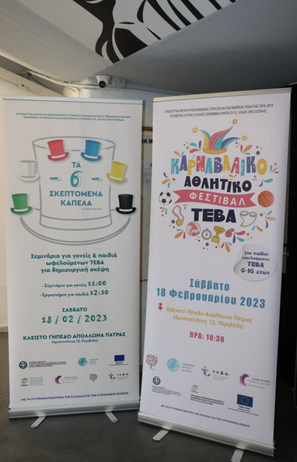Με την ενεργή συμμετοχή παιδιών και γονέων ωφελούμενων ΤΕΒΑ και άλλων προσκεκλημένων ολοκληρώθηκε το Καρναβαλικό Αθλητικό Φεστιβάλ που διοργάνωσε η Περιφέρεια Δυτικής Ελλάδας, ΚΣ Π.Ε Αχαΐας το Σάββατο 18 Φεβρουαρίου 2023 στο κλειστό γήπεδο του Απόλλωνα στην Πάτρα.