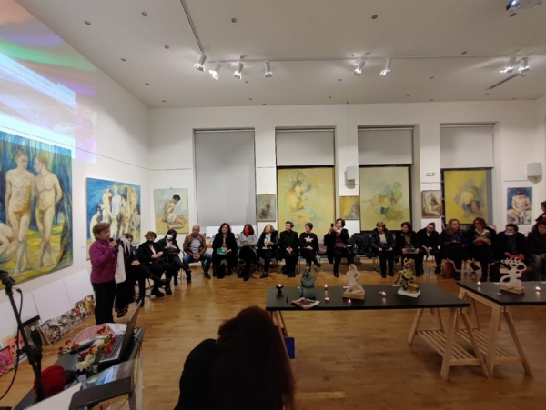 Η δεύτερη συνάντηση που πραγματοποιήθηκε στον χώρο του Κτιρίου Χρυσόγελου ξεκίνησε με την παρουσίαση της Φιλολόγου Msc Δημιουργικής Γραφής Σόφης Λαναρά, η οποία καλωσόρισε και ευχαρίστησε, ιδιαιτέρως, τις κυρίες του Γυναικείου Πολιτιστικού Συλλόγου Σταμνάς, του Γαλατά, της «Αρχαίας Καλυδώνας», αλλά και τους εκλεκτούς πολίτες για τη συμμετοχή τους σε μια τέτοια συνεδρία ψυχής και πνεύματος, ενώ αναφέρθηκε επιγραμματικά στους στόχους του βιωματικού αυτού εργαστηρίου. Κατόπιν, η Δρ Αθανασία Δημητρίου, Επιστημονική Διευθύντρια του ΟΔΥΣΣΕΑ -ΟΚΑΝΑ χαιρέτισε το βιωματικό αυτό εργαστήριο, τονίζοντας την αναγκαιότητα του «μοιράσματος» και της αυτοέκφρασης στη σύγχρονη εποχή της αποξένωσης και της κοινωνικής απομόνωσης. Στην κατάμεστη αίθουσα του Κτιρίου Χρυσόγελου ακολουθήθηκε η διαδικασία του προγράμματος του βιωματικού εργαστηρίου, ενώ εμπλουτίστηκε με την ευχάριστη νότα της εκτέλεσης ενός τραγουδιού από τον Μουσικό και Διευθυντή του Μουσικού Ομίλου «Ιωσήφ Ρωγών» Δημήτρη Μανωλάτο, όπως εμπλουτίστηκε και η αντίστοιχη συνάντηση του Αγρινίου από την τραγουδοποιό Ελισάβετ Αθανασίου, που συνέθεσε και εκτέλεσε το άσμα «Τραγούδι για τη Γυναίκα» αφιερωμένο σε κάθε γυναίκα. Η οργάνωση και η επιμέλεια του βιωματικού εργαστηρίου υλοποιήθηκε από τις υπαλλήλους του Κτιρίου Χρυσόγελου Αποστολία Πάστρα, Μαρία Καρατζογιάννη και Τζένη Τσιαντοπούλου, καθώς και με την συμμετοχή των εθελοντριών Έλενας Γκογκάι, Σιντορέλας Σουτία, Μαρίας Μπλέτσα και Παρασκευής Καραμούζα.