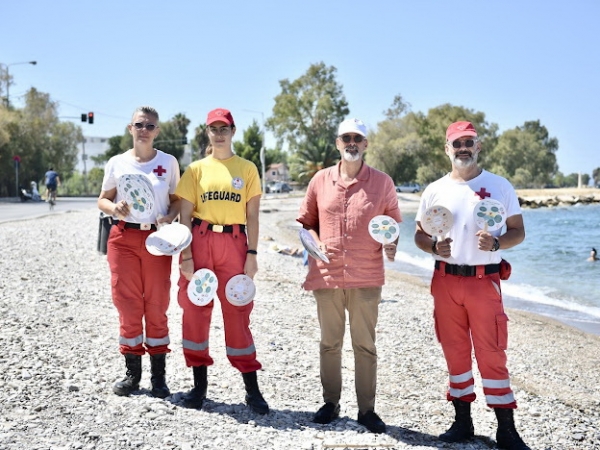 Στην παραλία της πλαζ, στην Πάτρα, βρέθηκαν ο Αντιπεριφερειάρχης ΠΕ Αχαΐας και αρμόδιος για θέματα δημόσιας υγείας Χαράλαμπος Μπονάνος με τον Νίκο Κοσκινά και την Τάνια Τσαμολιά συνυπεύθυνους του Σώματος Εθελοντών, Διασωστών και Ναυαγοσωστών του Ελληνικού Ερυθρού Σταυρού του τμήματος Πάτρας και μαζί με άλλους εθελοντές, μοίρασαν ενημερωτικά φυλλάδια και βεντάλιες στους λουόμενους με οδηγίες για ασφαλές κολύμπι και για την προστασία από τον καύσωνα.