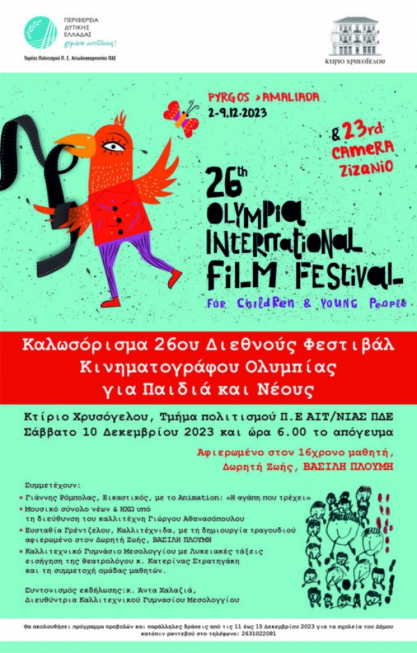 Οι εκπαιδευτικές μονάδες του Δήμου Ι. Π. Μεσολογγίου έχουν τη δυνατότητα να συμμετέχουν στο πρόγραμμα προβολών στο κτίριο Χρυσόγελου από τις 11 έως 15 Δεκεμβρίου 2023 κατόπιν ραντεβού στο τηλέφωνο 2631022081.