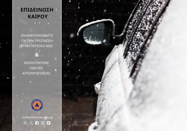 Η Γενική Γραμματεία Πολιτικής Προστασίας (www.civilprotection.gr) του Υπουργείου Προστασίας του Πολίτη, έχει ενημερώσει τις αρμόδιες υπηρεσιακά εμπλεκόμενες κρατικές υπηρεσίες, καθώς και τις περιφέρειες και τους δήμους της χώρας, ώστε να βρίσκονται σε αυξημένη ετοιμότητα πολιτικής προστασίας, προκειμένου να αντιμετωπίσουν άμεσα τις επιπτώσεις από την εκδήλωση των έντονων καιρικών φαινομένων.