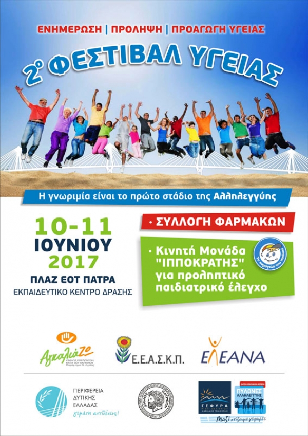 Ε.Λ.Ε.Α.Ν.Α., ΑΓΚΑΛΙΑ-ΖΩ, ΕΕΕΚΠΠ, Διεύθυνση Δημόσιας Υγείας, Φαρμακευτικός Σύλλογος Πατρών, Ε.Ε.Σ., ΦΛΟΓΑ, Ζωή Γλυκιά, Ν. CROHN, Π.Ο.Σ.Ε.Α, Σύλλογος Εθελοντών Αιμοδοτών Καραμανδανείου Νοσοκομείου Παίδων «Αγ. Στυλιανός», ΚΕΔΜΟΠ, Κίνηση «ΠΡΟΤΑΣΗ», Σύλλογος Οικογένειας Θεραπευτικής Κοινότητας ΓΕΦΥΡΑ του ΟΚΑΝΑ, «Καλλίπολις», Άλμα Ζωής, Σύλλογος Φυσιοθεραπευτών, Σωματείο Ίκελλος, «ΜΝΗΜΟΣΥΝΗ», ΣΟΨΥ, Κοι.σ.π.ε. «Φάρος», «ΓΕΦΥΡΕΣ», ΕΨΥΕΠΕΑ, Σύλλογος Γονέων για την εκπαίδευση και επαγγελματική κατάρτιση και αποκατάσταση ατόμων με νοητική στέρηση «Μαχητές», Θεραπευτικό Παιδαγωγικό Κέντρο Πάτρας «Μέριμνα», Φωτεινό Αστέρι, Ανώνυμοι Υπερφάγοι, Χαμόγελο του Παιδιού (Μονάδα «ΙΠΠΟΚΡΑΤΗΣ»), Σύλλογος Ατόμων Α.με.Α Π.Ε. Αιτωλοακαρνανίας «Ο Απόστολος Λουκάς».