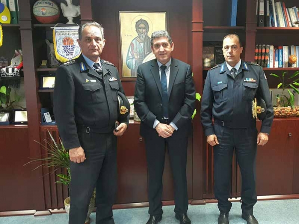 Ο κ. Αλεξόπουλος τους υποδέχθηκε στο γραφείο του με αφορμή την επίσημη ανάληψη των νέων καθηκόντων τους και η συνάντηση πραγματοποιήθηκε σε πολύ θερμό κλίμα. Ο κ. Αλεξόπουλος τους συνεχάρη και τους ευχήθηκε υγεία, δύναμη και κάθε επιτυχία στο έργο τους. Στο επίκεντρο της συζήτησης τέθηκε η συνέχιση της αποτελεσματικής συνεργασίας αλλά και η προστασία της ζωής και της περιουσίας του πολίτη, η πρόληψη και η αντιμετώπιση εκτάκτων αναγκών κλπ.